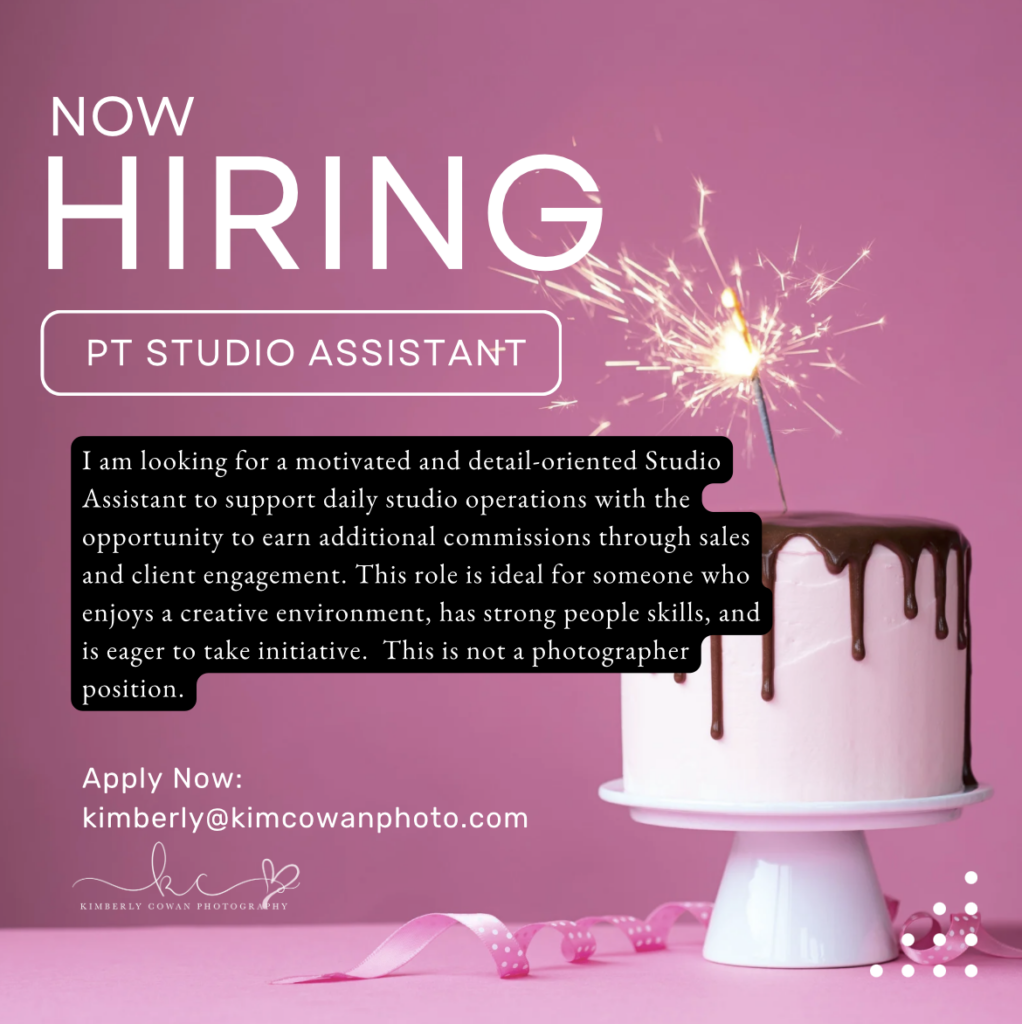 We are looking for a dependable, detail-oriented Part-Time Photography Assistant to join our newborn photography studio. If you love working with families and babies, enjoy creating beautiful spaces, and thrive in a fast-paced environment, we’d love to hear from you!
